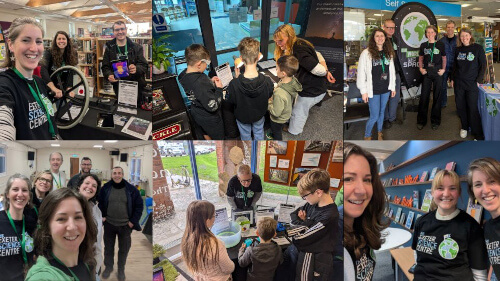 We had a fantastic day speaking to nearly 500 visitors, with the Operation Earth family show and a set of tabletop activities, including a microscopic moss and soil safari, guessing what’s in the mystery boxes, making wildflower seed plant pots and doodling on our tablecloth mural – where we asked visitors what they’d like to see in a science centre.